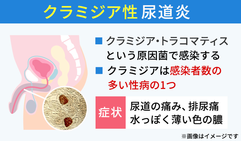 クラミジア性尿道炎とは、「クラミジア・トラコマティス」という細菌に感染することで尿道に起こる炎症です。炎症以外の症状がある場合は、クラミジア感染症と診断されることもあります。